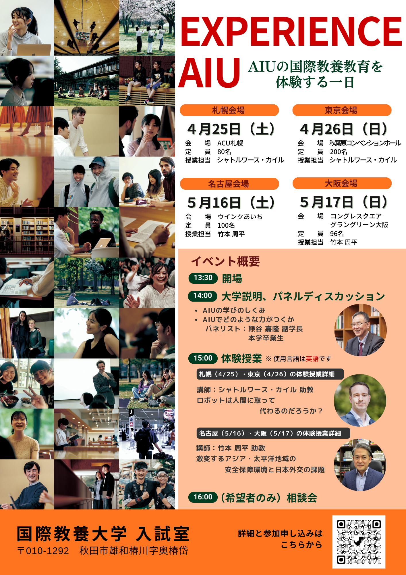 ・2026年度Experience AIUの申込は 3月2日(月)16時 から可能となる予定です。