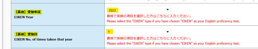 受験年度、受験回の入力については、画像のマーカー部分の数字を正しく入力してください。